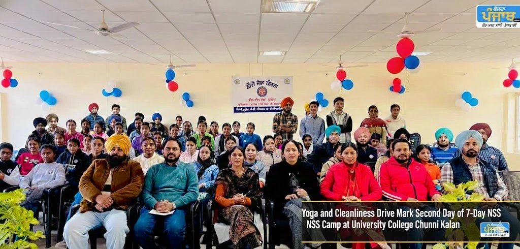 ਚੁੰਨੀ ਕਲਾਂ, 07 ਫਰਵਰੀ 2026 – ਯੂਨੀਵਰਸਿਟੀ ਕਾਲਜ ਚੁੰਨੀ ਕਲਾਂ ਵਿਖੇ ਚੱਲ ਰਹੇ 7 ਰੋਜ਼ਾ ਐਨ.ਐਸ.ਐਸ (ਨੈਸ਼ਨਲ ਸਰਵਿਸ ਸਕੀਮ) ਕੈਂਪ ਦੇ ਦੂਜੇ ਦਿਨ ਦੀ ਸ਼ੁਰੂਆਤ ਤਾਜਗੀ ਅਤੇ ਉਤਸ਼ਾਹ ਨਾਲ ਕੀਤੀ ਗਈ। ਦਿਨ ਦੀ ਸ਼ੁਰੂਆਤ ਐਨ.ਐਸ.ਐਸ ਵਲੰਟੀਅਰਾਂ ਨੂੰ ਯੋਗਾ ਅਭਿਆਸ ਕਰਵਾਉਣ ਨਾਲ ਹੋਈ। ਇਸ ਮੌਕੇ ਅਸਿਸਟੈਂਟ ਪ੍ਰੋਫੈਸਰ ਸ੍ਰੀ ਵਿਜੇ ਕੁਮਾਰ ਜੀ ਨੇ ਵਲੰਟੀਅਰਾਂ ਨੂੰ ਵੱਖ-ਵੱਖ ਯੋਗ ਆਸਨਾਂ ਅਤੇ ਪ੍ਰਾਣਾਇਾਮ ਦੀ ਪ੍ਰੈਕਟਿਸ ਕਰਵਾਈ ਅਤੇ ਉਨ੍ਹਾਂ ਨੂੰ ਯੋਗਾ ਦੇ ਸਰੀਰਕ ਅਤੇ ਮਾਨਸਿਕ ਲਾਭਾਂ ਬਾਰੇ ਵੀ ਜਾਣੂ ਕਰਵਾਇਆ।