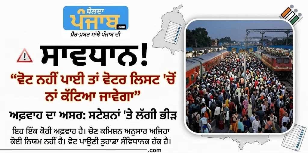 ਨੋਟ: ਵੋਟਰ ਲਿਸਟ ਵਿੱਚ ਨਾਂ ਸਿਰਫ਼ ਮੌਤ, ਪਤਾ ਬਦਲਣ ਜਾਂ ਦੋਹਰੀ ਵੋਟ ਵਰਗੇ ਤਕਨੀਕੀ ਕਾਰਨਾਂ ਕਰਕੇ ਹੀ ਕੱਟਿਆ ਜਾ ਸਕਦਾ ਹੈ, ਵੋਟ ਨਾ ਪਾਉਣ ਕਰਕੇ ਨਹੀਂ।