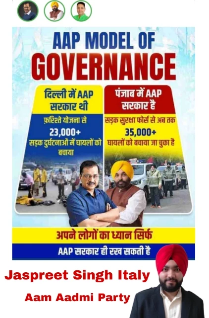 ਨਵੀਂ ਦਿੱਲੀ/ਚੰਡੀਗੜ੍ਹ: ਆਮ ਆਦਮੀ ਪਾਰਟੀ (AAP) ਨੇ ਆਪਣੇ 'ਗਵਰਨੈਂਸ ਮਾਡਲ' ਰਾਹੀਂ ਸਿਹਤ ਅਤੇ ਸਿੱਖਿਆ ਤੋਂ ਬਾਅਦ ਹੁਣ ਸੜਕ ਸੁਰੱਖਿਆ ਦੇ ਖੇਤਰ ਵਿੱਚ ਵੱਡੀਆਂ ਪ੍ਰਾਪਤੀਆਂ ਦਰਜ ਕੀਤੀਆਂ ਹਨ। ਦਿੱਲੀ ਦੀ 'ਫ਼ਰਿਸ਼ਤੇ ਯੋਜਨਾ' ਅਤੇ ਪੰਜਾਬ ਦੀ 'ਸੜਕ ਸੁਰੱਖਿਆ ਫੋਰਸ' (SSF) ਰਾਹੀਂ ਹੁਣ ਤੱਕ ਹਜ਼ਾਰਾਂ ਲੋਕਾਂ ਦੀਆਂ ਜਾਨਾਂ ਬਚਾਈਆਂ ਜਾ ਚੁੱਕੀਆਂ ਹਨ।